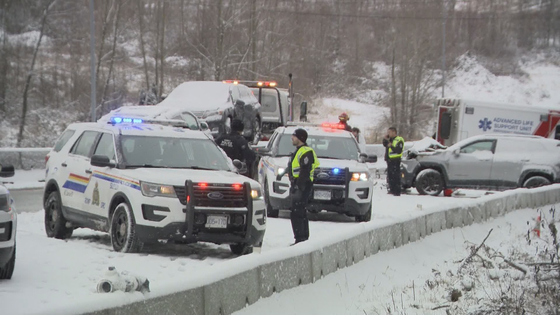 Sunday’s snowfall that hit the Lower Mainland led to a scary incident for first responders in Surrey.