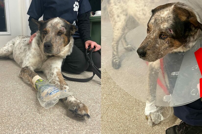 An Australian cattle dog-Akbash mix named Sinbad was found alone and injured in a wilderness area four hours outside of Prince George, and is now healing at the SPCA’s North Cariboo location.