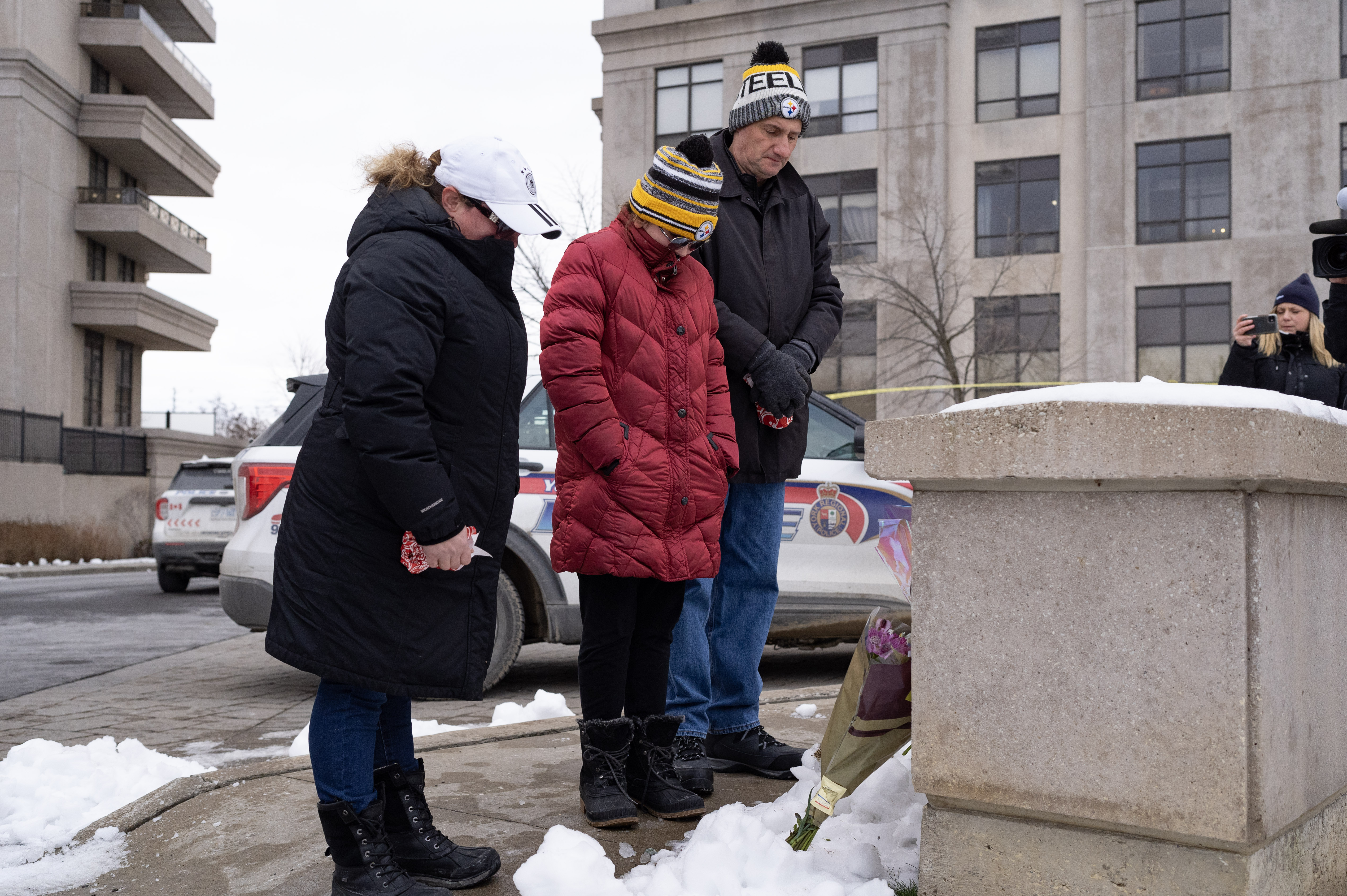 Dozens of people holding candles and flowers gathered outside the city hall in Vaughan, Ont., to pay their respects.
