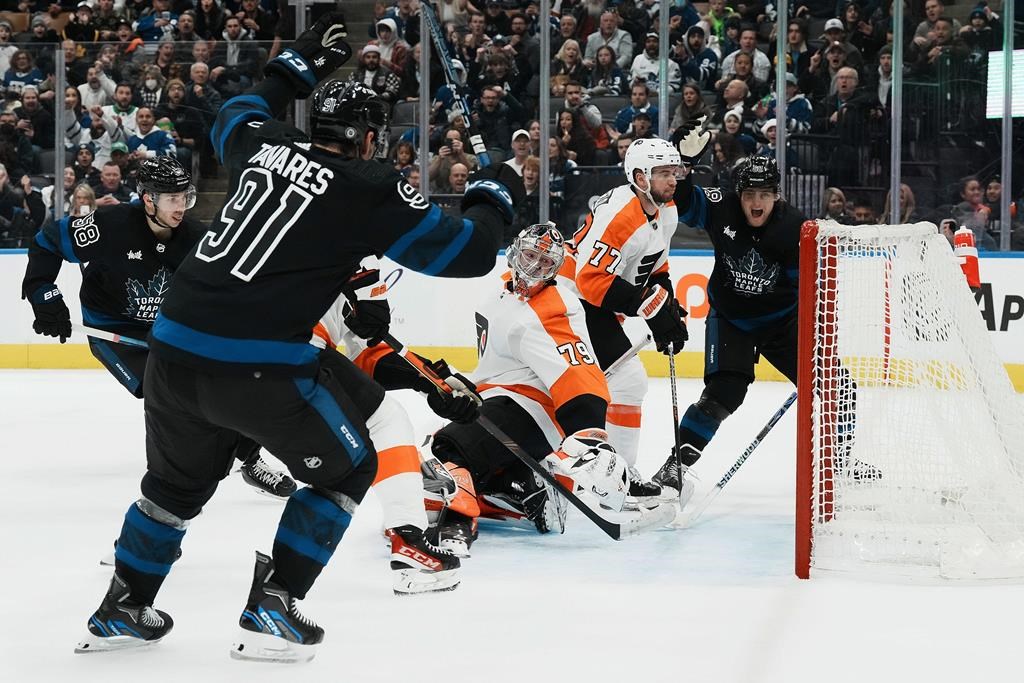 But after Philadelphia goalie Carter Hart stopped the first 23 shots he faced, including a short-handed breakaway from Mitch Marner in the opening period, a pair of late goals in the second period ignited the Maple Leafs.