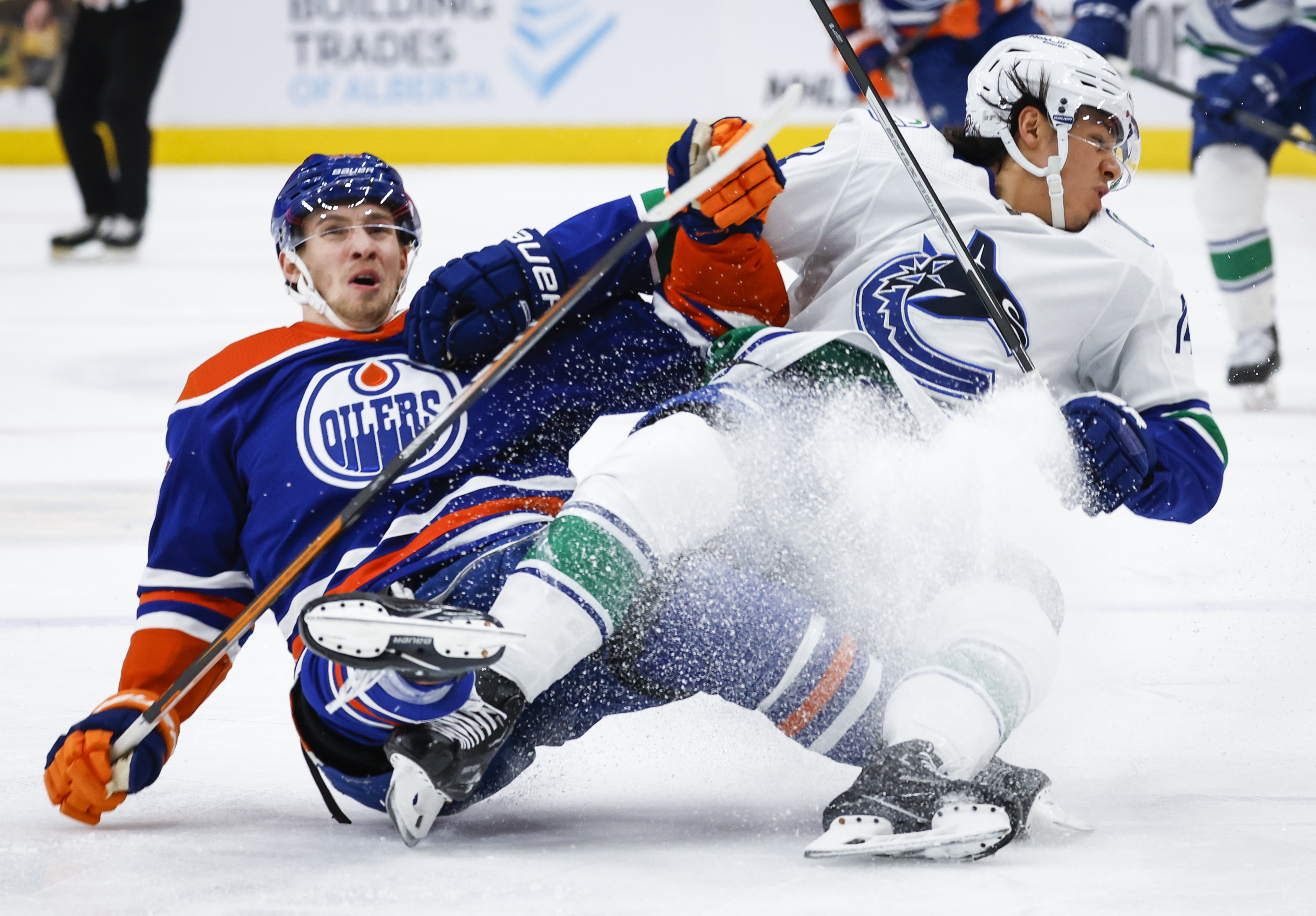 Vancouver got a bizarre goal just 41 seconds into the second period as a shot by Miller deflected high into the air off of Edmonton goalie Stuart Skinner and then hit his back and caromed into the net.