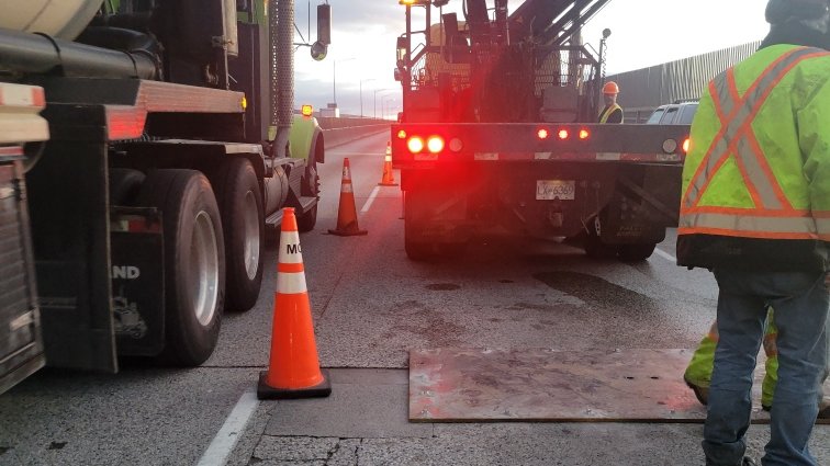 Staite said contractors had cut out a one-by-three-metre section of the bridge deck, and will be laying new rebar and pouring new concrete. They will also be replacing the metal plate with a larger plate.