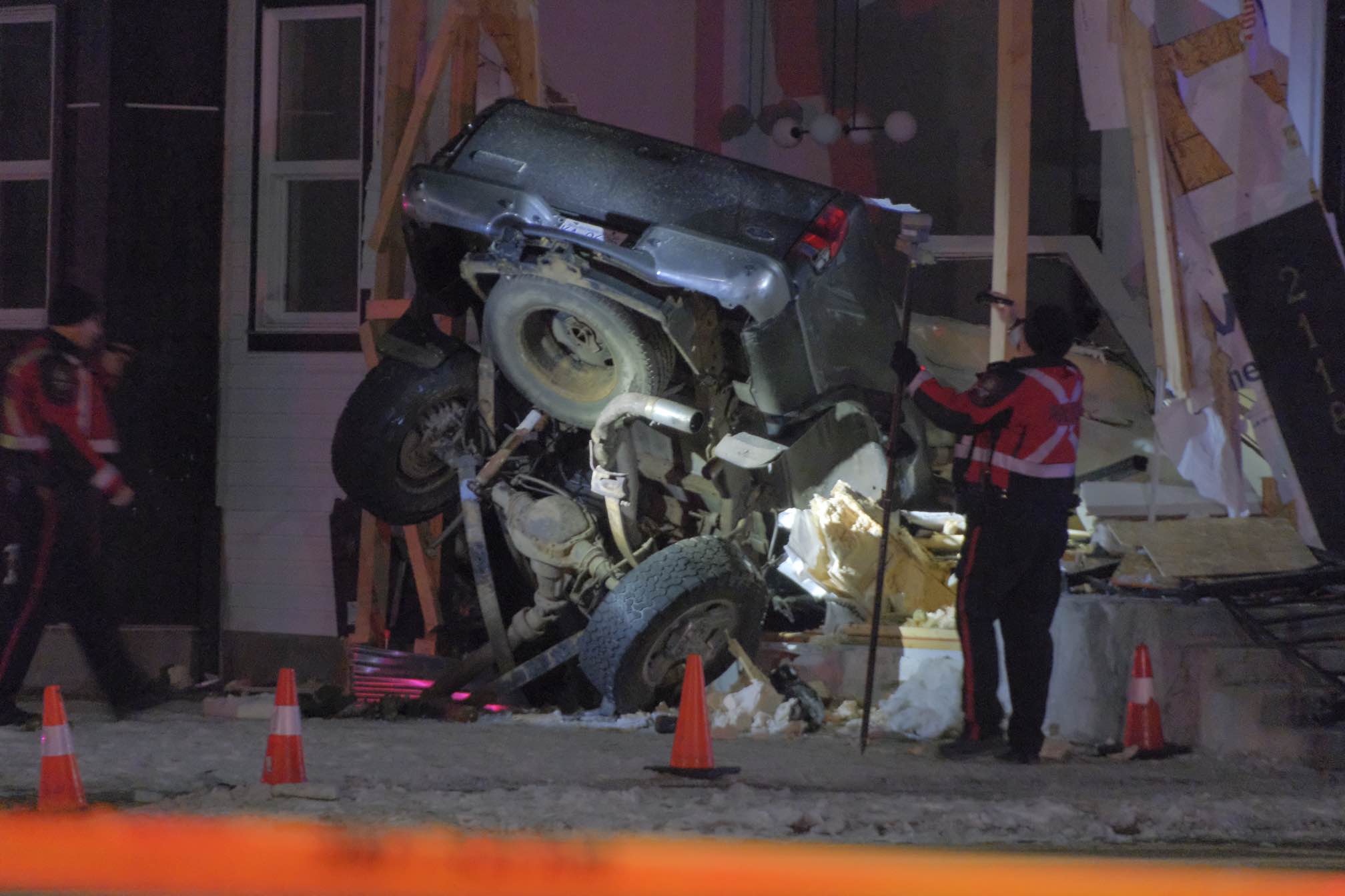Calgary police said a man was in life-threatening condition after a truck crashed into a southeast home.