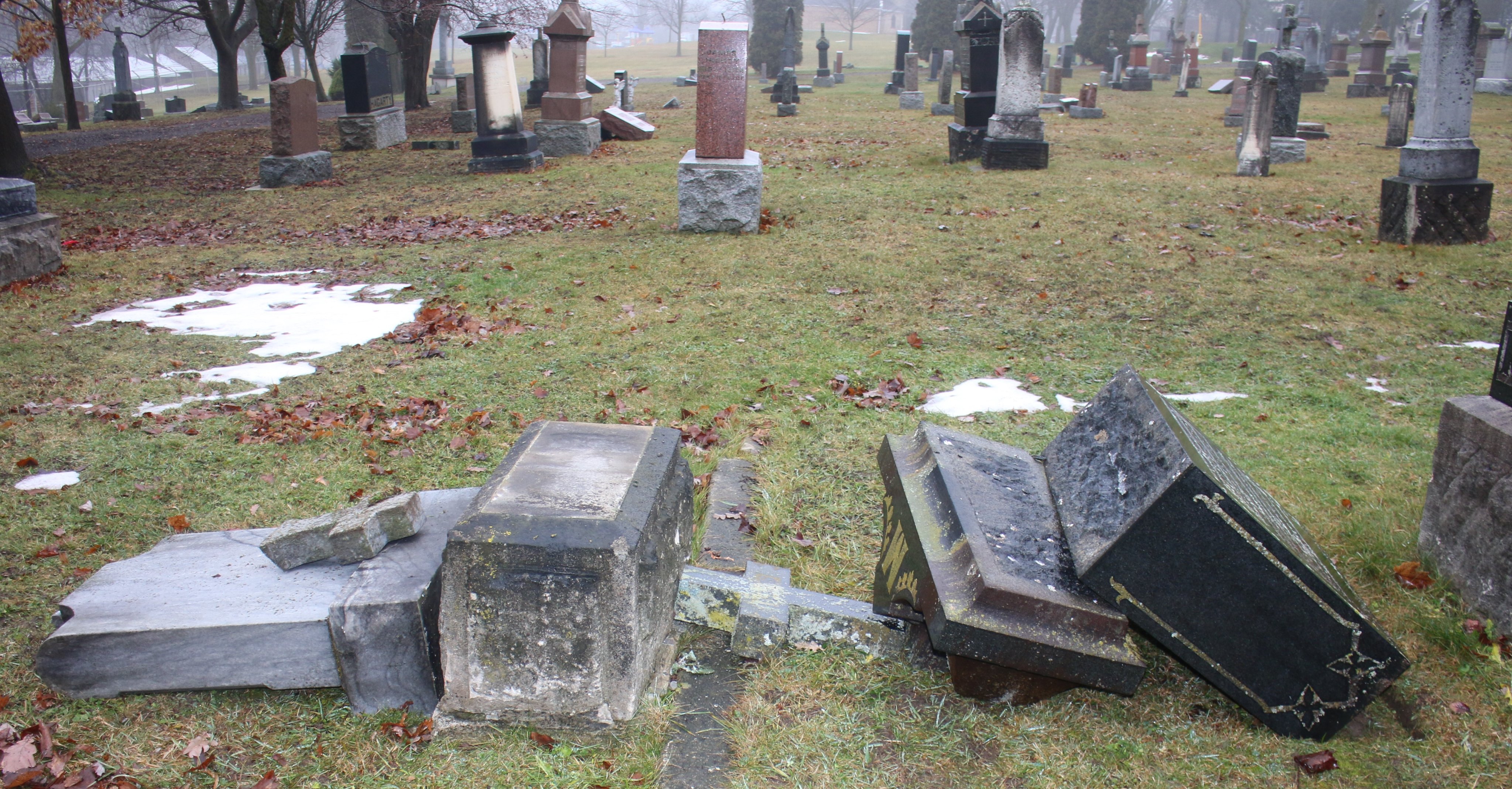 A total of 61 headstones were damaged, police said.