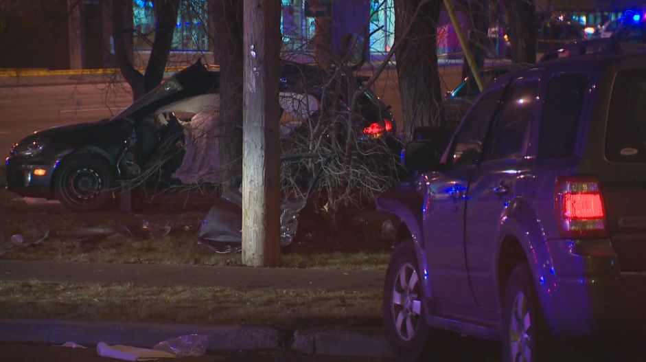 The collision happened at about 12:30 Friday morning in the Garneau neighbourhood. An SUV was allegedly travelling the wrong way on 83 Avenue at an excessive speed when it crossed four lanes of traffic on 109 Street and hit a car.