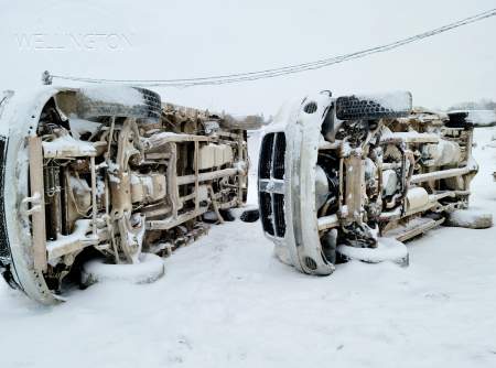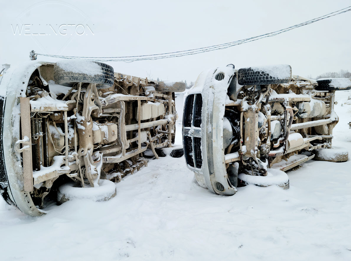 Wellington County OPP were notified about several trucks parked at a gravel pit in Puslinch that were found turned on their side.