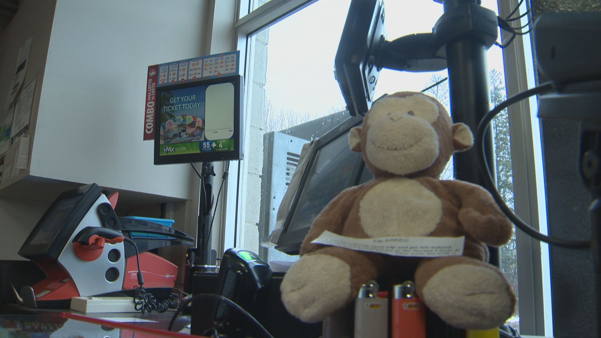 In early January, the stuffed monkey was left to swing on his own at a small-town gas station, and since then, employees have been trying to find its owner.