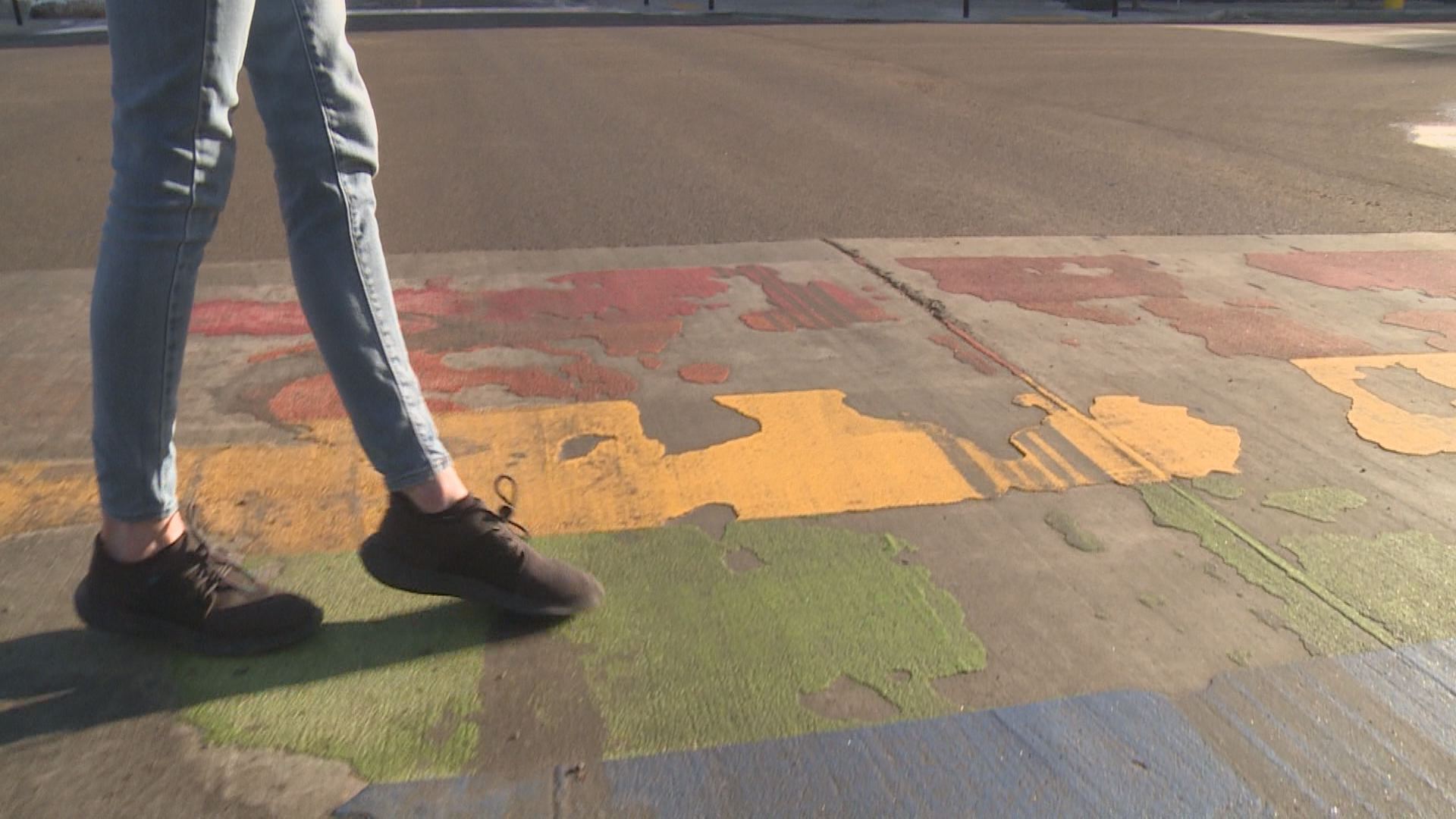 Lethbridge’s rainbow pride crosswalk is looking much less vibrant than it did just eight months ago, despite being installed using “permanent” paint.