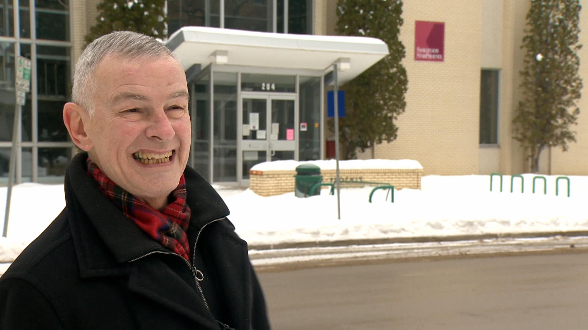 “That’s my window right there,” MacPherson said, pointing to a street-facing window at the StarPhoenix while on location with Global News.