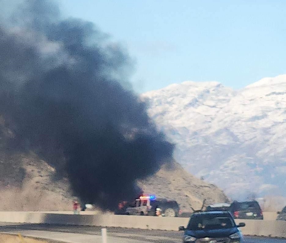 Posts to local Facebook pages by motorists showed long lines of northbound traffic due to a vehicle on fire just outside of Penticton.