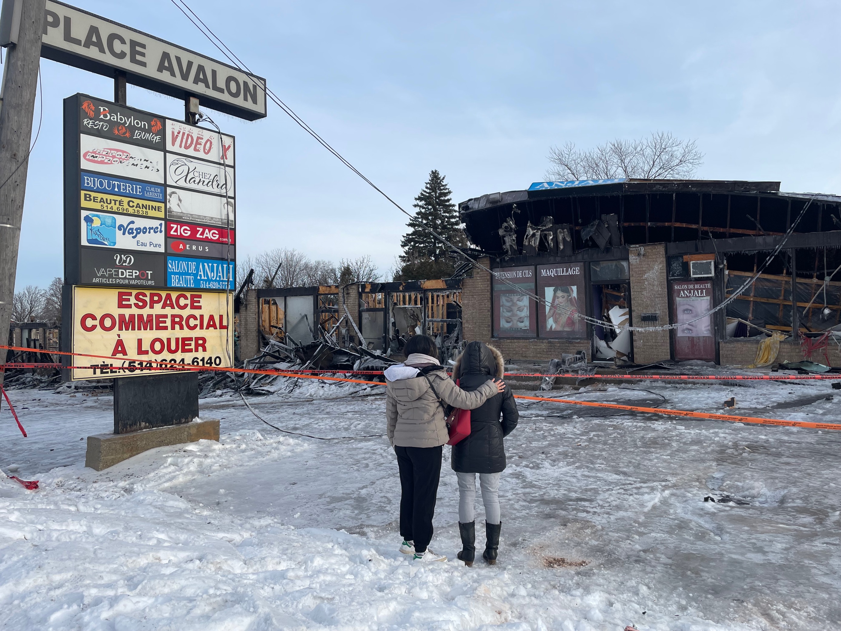 Anjali Singh’s mother owns Anjali Beauty, a salon in the stretch that has been open for 12 years. The pair stood outside the gutted stretch on St-Charles Boulevard, taking in the damage.