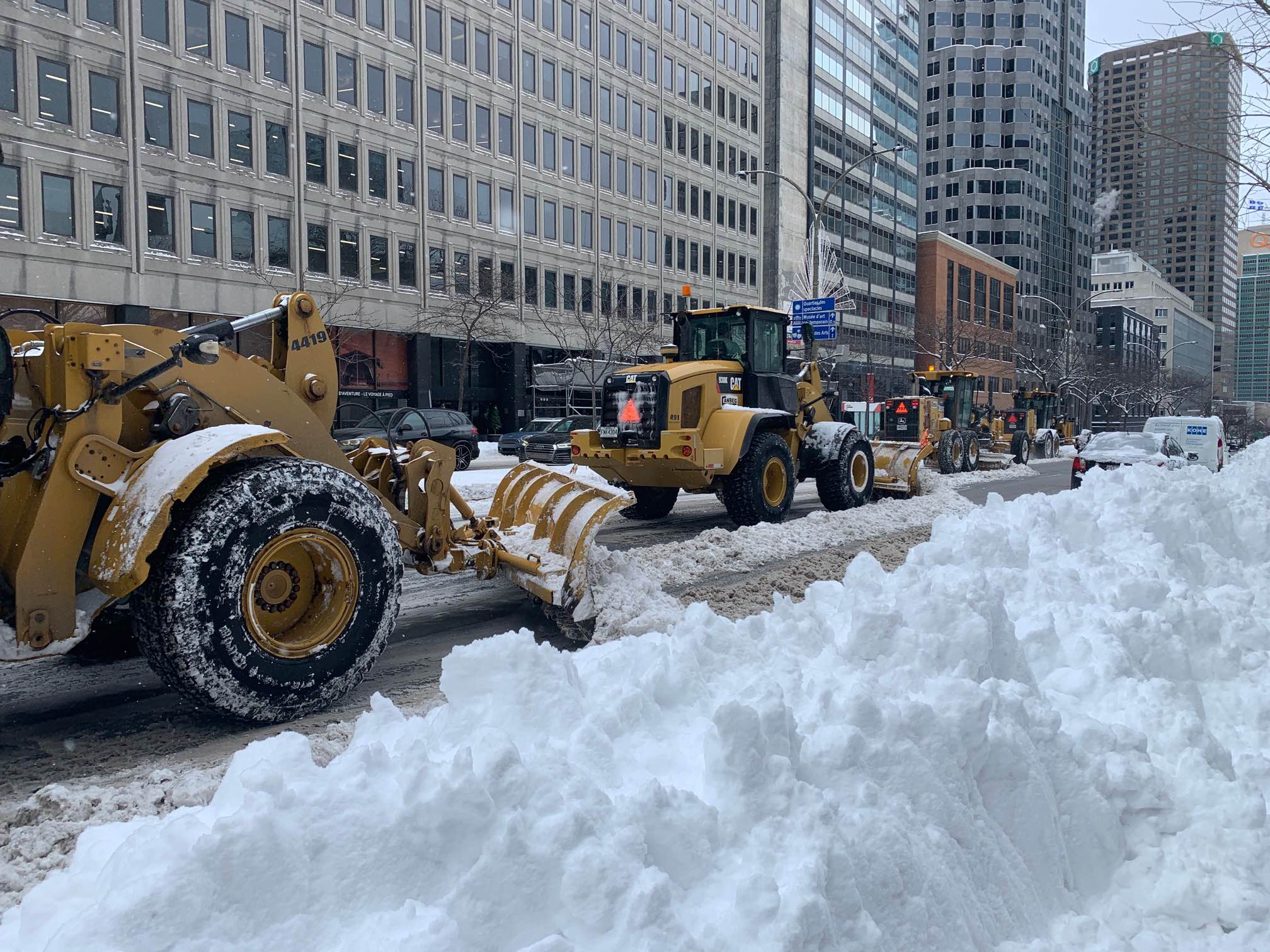 Mayor Valérie Plante took to social media around noon to let citizens know that both snow clearing and loading is underway on streets and sidewalks across the city.