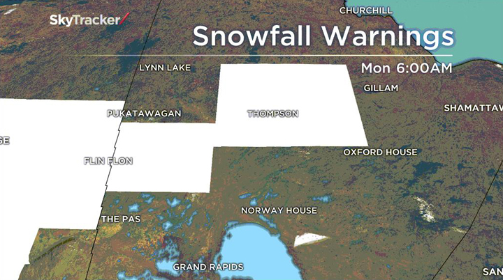 Flin Flon had already received 18 centimetres of snow by 7 a.m. Monday after Environment Canada issued a snowfall warning for Flin Flon, Thompson, Cranberry Portage, Snow Lake, Nelson House and Split Lake, Man.
