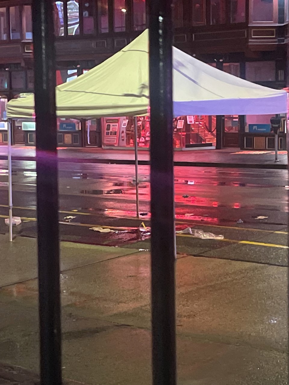 That was where a man was found dead, reportedly on the street, where a white tent has now been set up.
