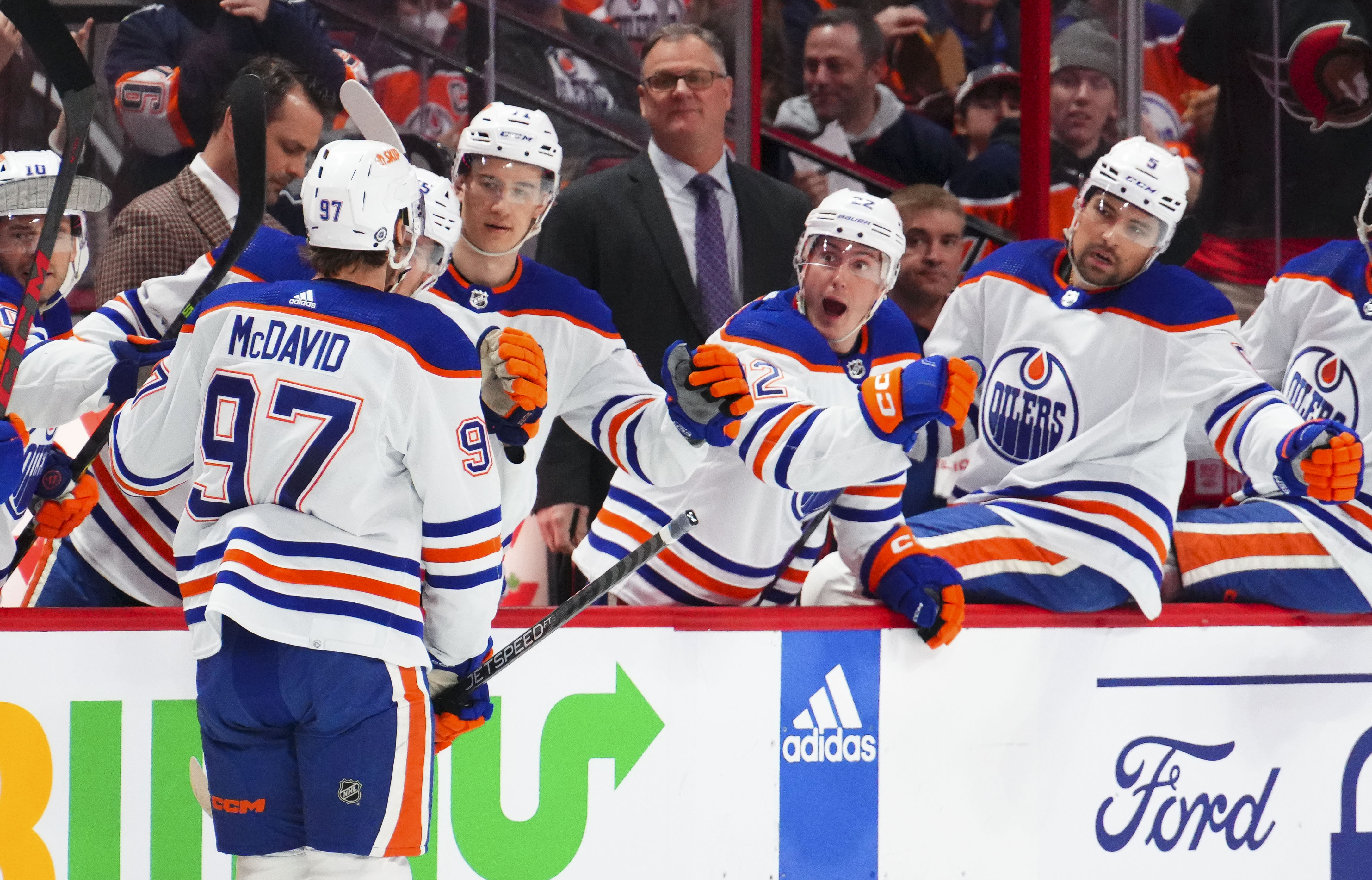 The Oilers, who are 9-0-2 in their last 11 games, were strong early and took the lead 2:18 into the game. Connor McDavid gathered in a rebound behind the net and banked in his 42nd off the skate of goalie Anton Forsberg.