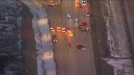 STARS air ambulance landed on the site of the accident after being dispatched to the scene just before 6 p.m., blocking northbound lanes of traffic.