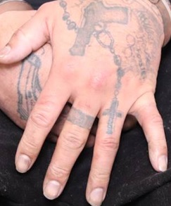 Police said he has multiple tattoos, including the word “Dawson” scrawled across the front of his neck, a tattoo gun on a forearm, flames and nature scenes on the other arm, and handguns across the tops of his hands,