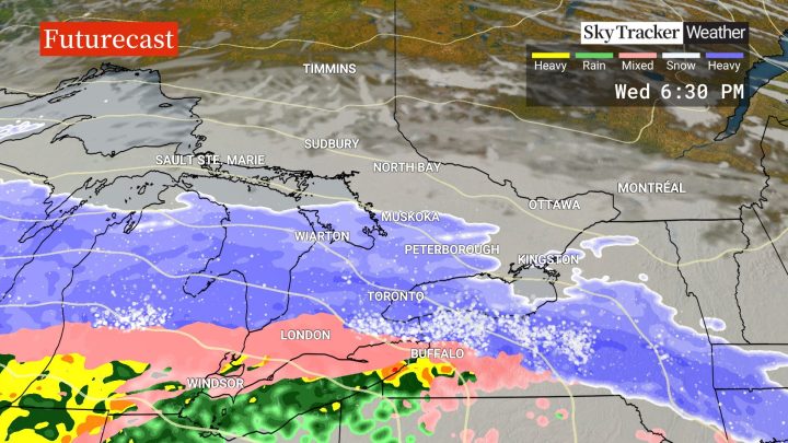 “Snow will remain on the light side until mid afternoon in the GTA but will quickly ramp up in intensity late today,” Global News meteorologist Anthony Farnell said.