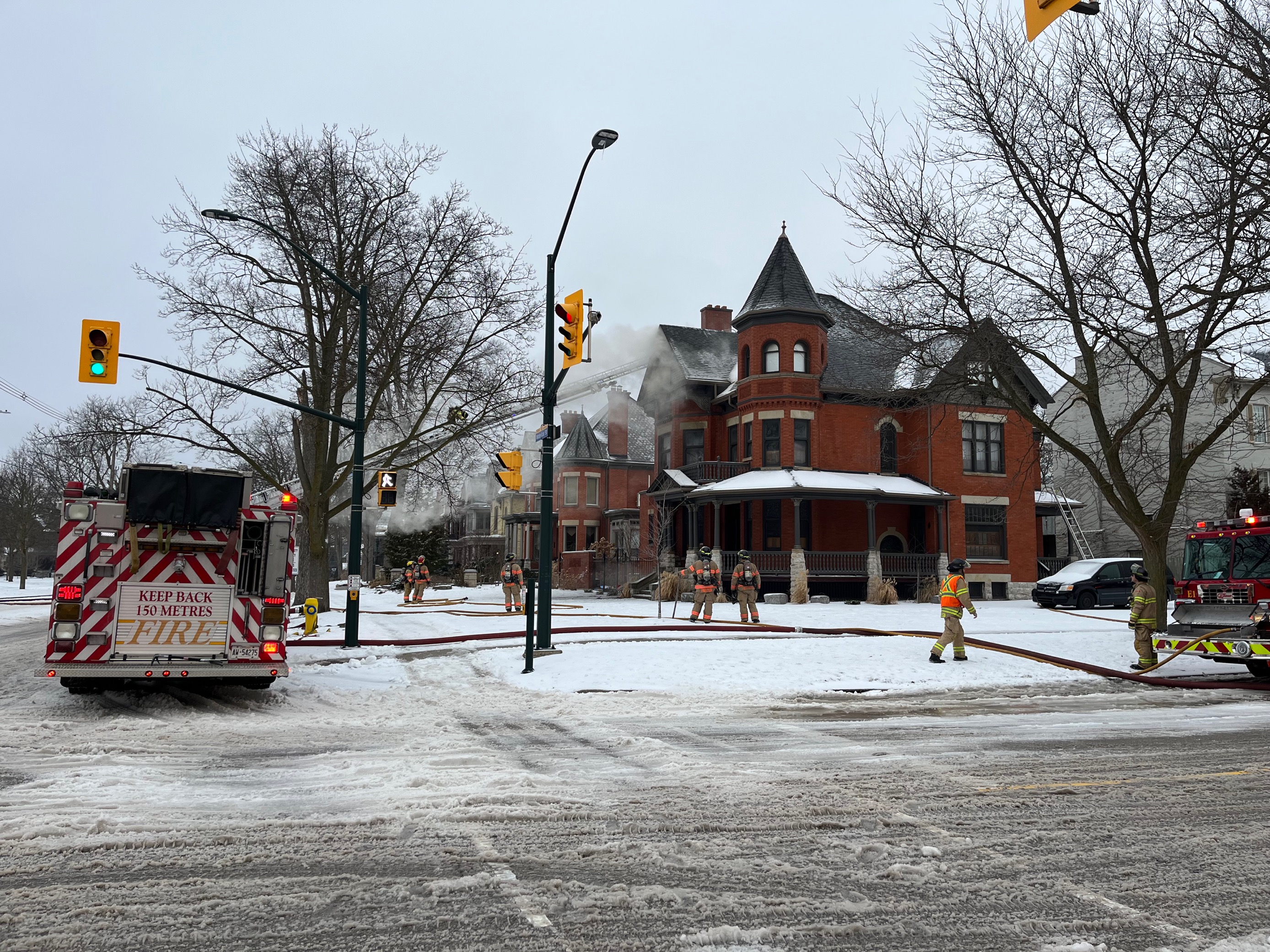 Jamie Britton, district chief for the London Fire Department, told Global News that crews arrived to see “heavy fire and smoke on the third-floor balcony of the home and a possible extension into the attic.”