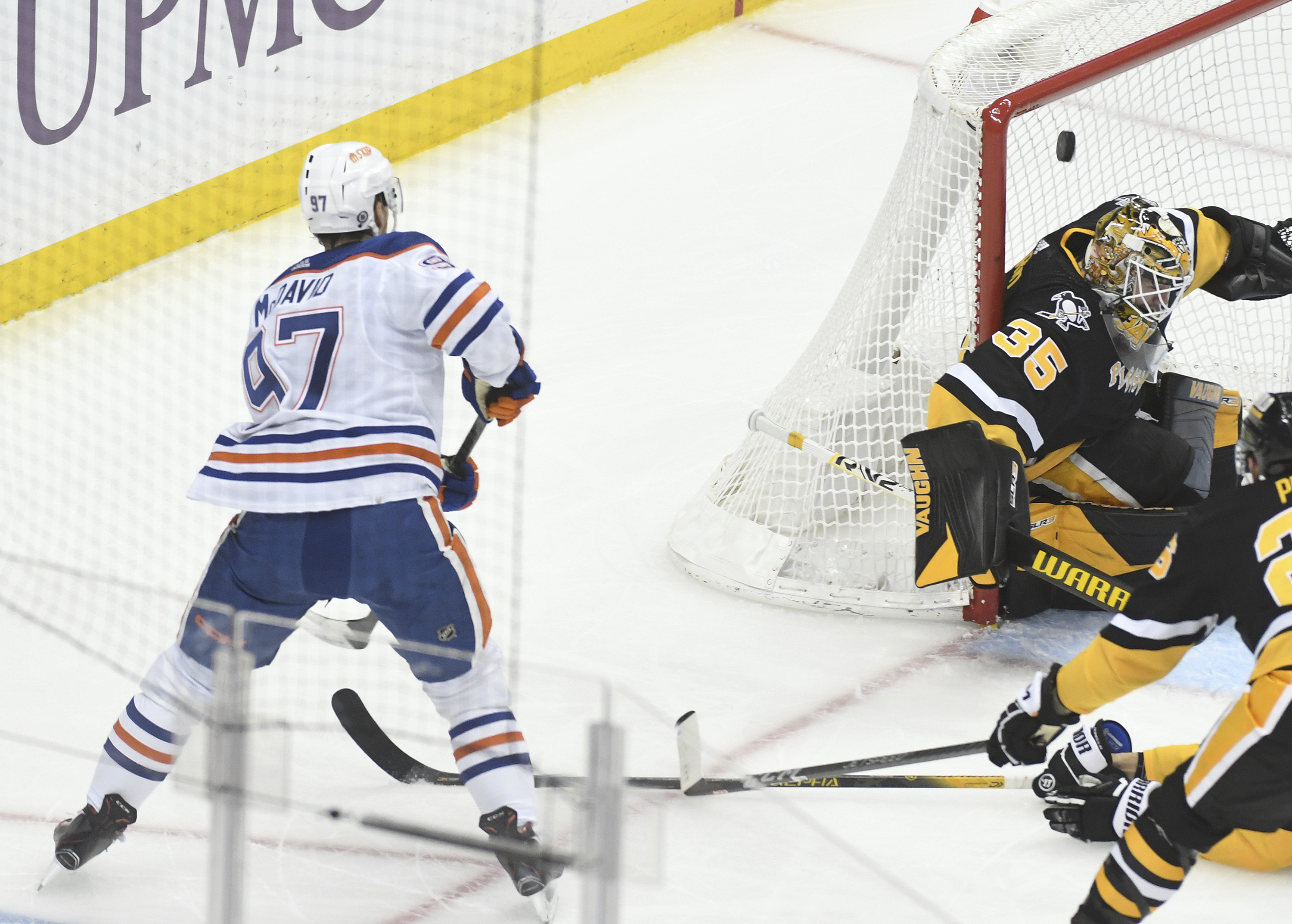 The Oilers outshot the Penguins 44-24.