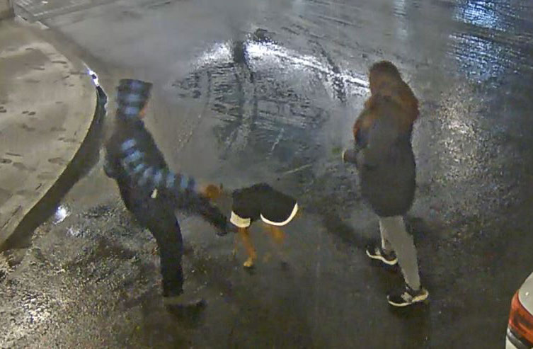 Police in Victoria, B.C., are on the lookout for a man seen assaulting tourists and kicking their dog on security video.
