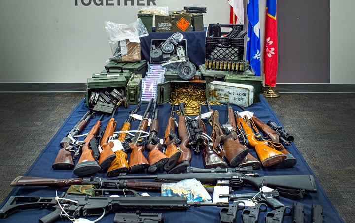 The RCMP said police discovered 37 firearms, weapon parts and military accessories, more than 10,000 rounds of ammunition and around 200 high-capacity magazines.
