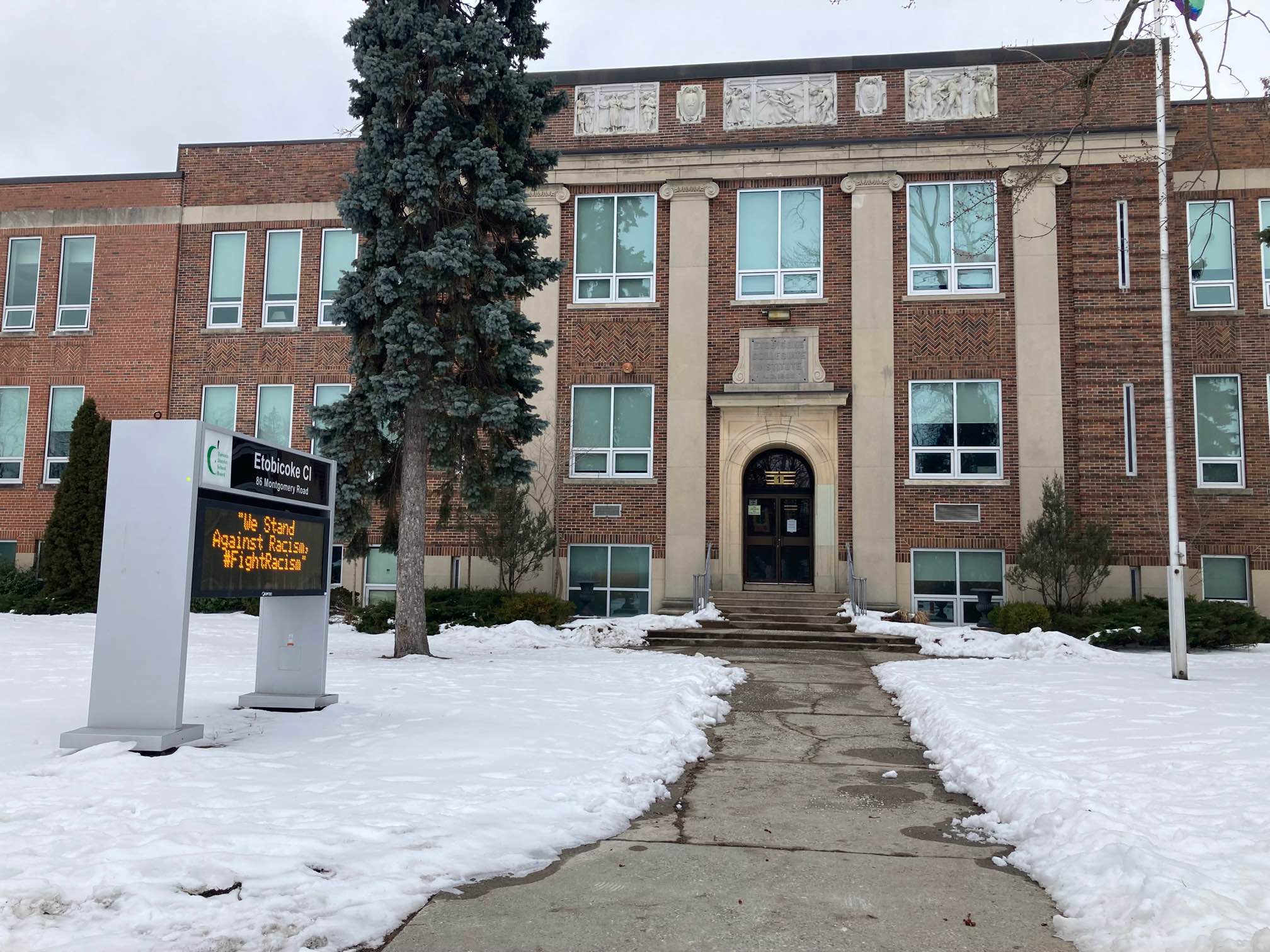 Toronto police said officers were called to Etobicoke Collegiate Institute in the Montgomery Road and Dundas Street West area just after 11 a.m. on Friday.