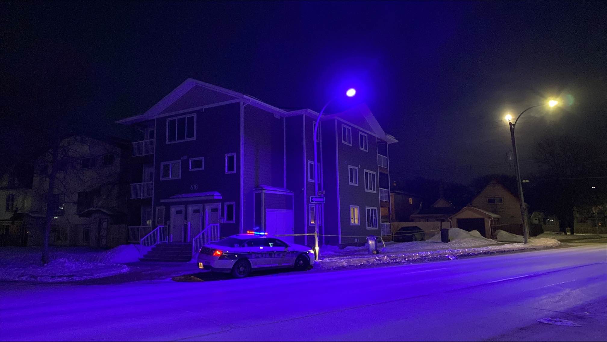 Police were called to the scene around 2:15 a.m., and found three injured people in a residential suite and a fourth nearby. Officers performed emergency medical care onsite, and the victims — two men in their 20s and two in their 30s — were taken to hospital in unstable condition.