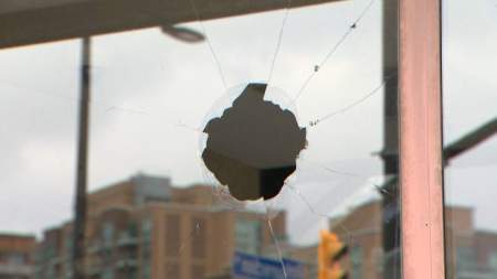 An object was thrown through the front glass window, police allege.