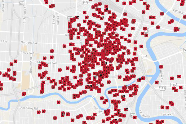 The address of each fallen soldier is marked with a poppy on the map. Zoom in on neighbourhoods or enter addresses in the search bar and click on individual poppies to bring up the name, address, date of death, rank, occupation, burial location and links to more information about each soldier.