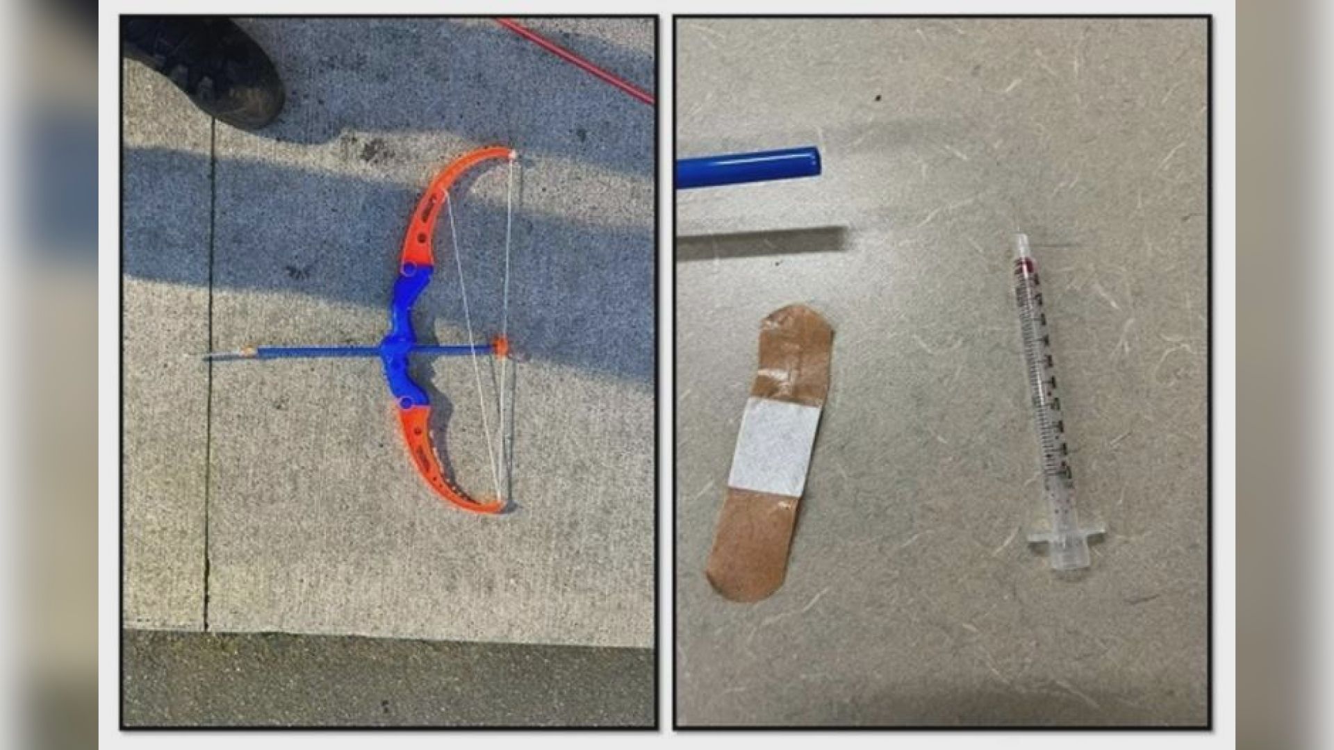 A bizarre Nanaimo, B.C., incident has led to numerous charges for a suspect after he reportedly threatened people with a toy bow and arrow with a hypodermic needle sticking out the end.