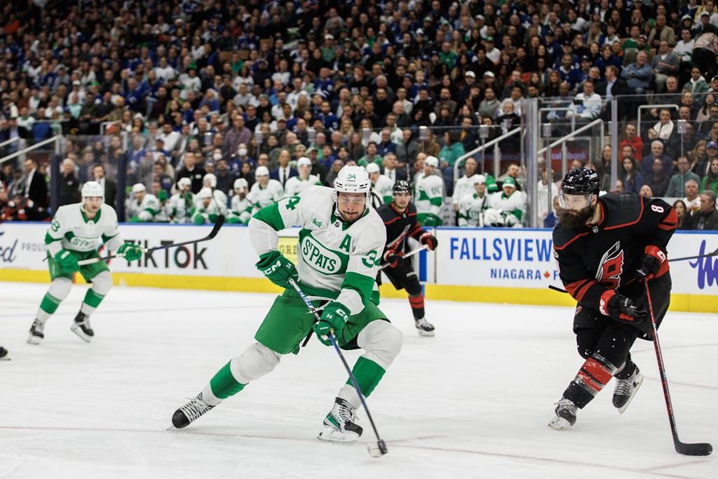 The Leafs sported their Toronto St. Pats threads — a nod to the franchise’s moniker from 1919 through 1927 — on St. Patrick’s Day.