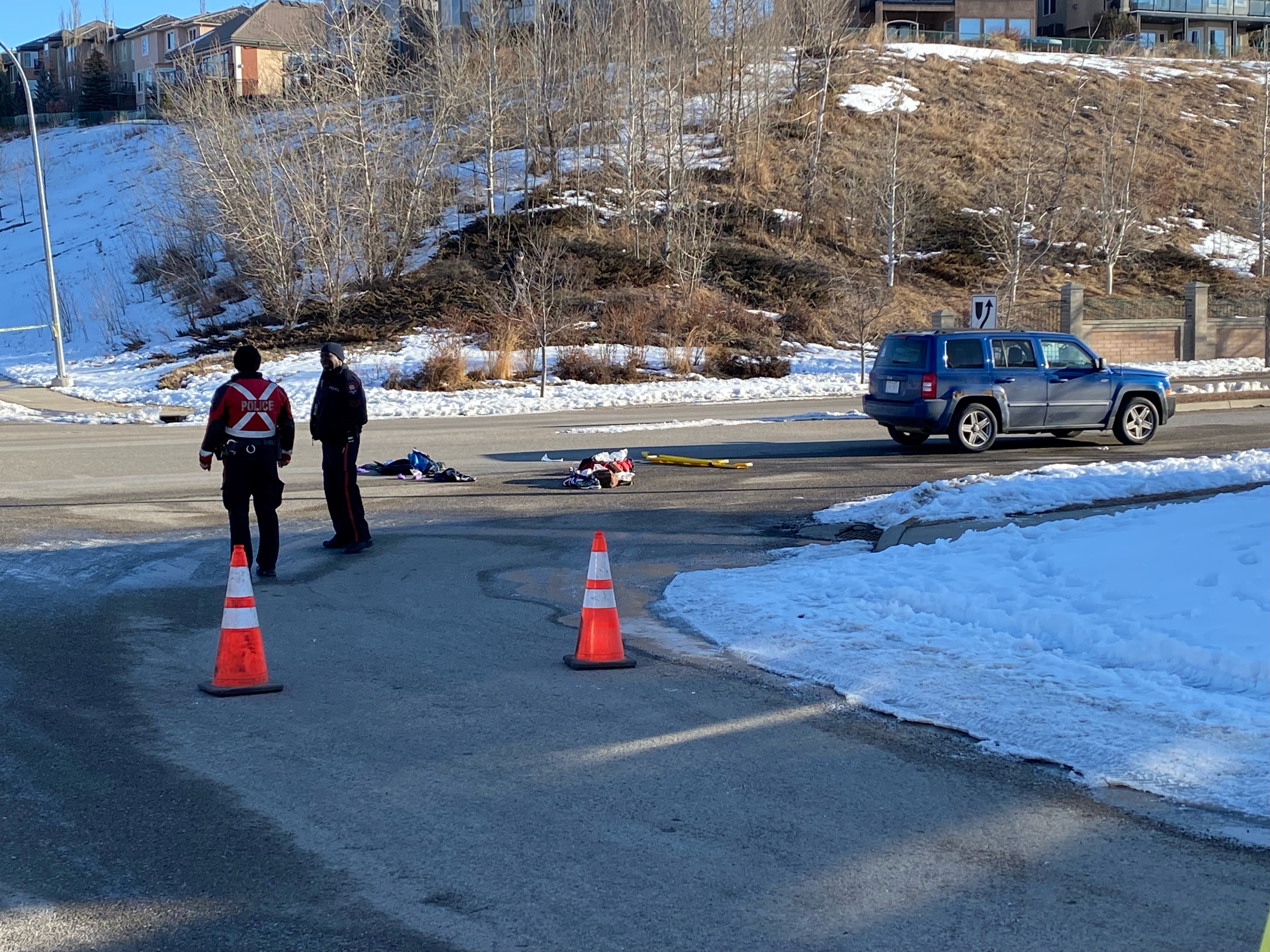 Personal items — like a bag, clothing and shoes — were visible at the scene of the collision.