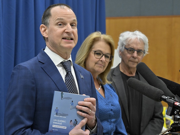Quebec Finance Minister Eric Girard broke with tradition on Monday as he unveiled the theme of his 2023-2024 budget: Un Québec engagé or A committed Quebec.