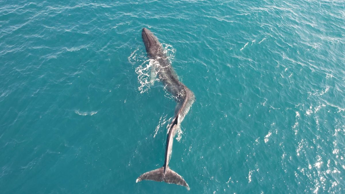 The aquarium’s team attempted to attach a tracking device to the fin whale but were unable to because of its overly curved spine.