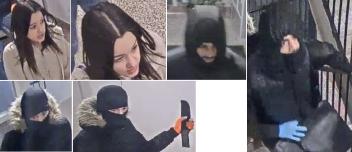 One of the men — who allegedly had a firearm — was described as six-foot-three, 20 years old and was wearing a black winter jacket, dark jeans, black shoes, a black face mask, blue latex gloves and was carrying a black shoulder bag, police said.