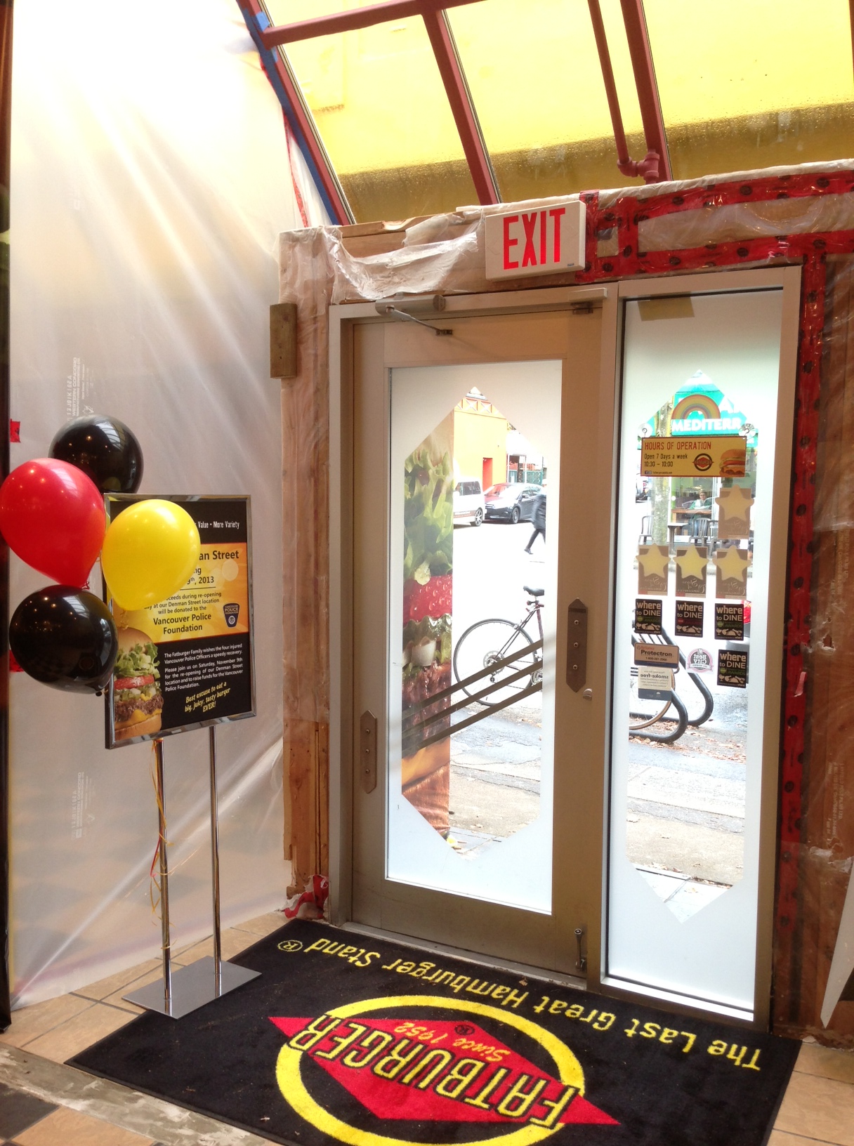 A fast food restaurant in the West End is re-opening its doors after a car crashed through its windows, injuring four Vancouver police officers last weekend.