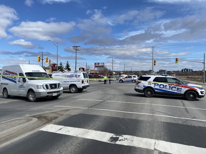 According to police, the suspect’s vehicle is described as a grey Honda Civic and occupied by several armed black males last seen fleeing from the scene travelling northbound on Centennial Dr from Bath Rd.