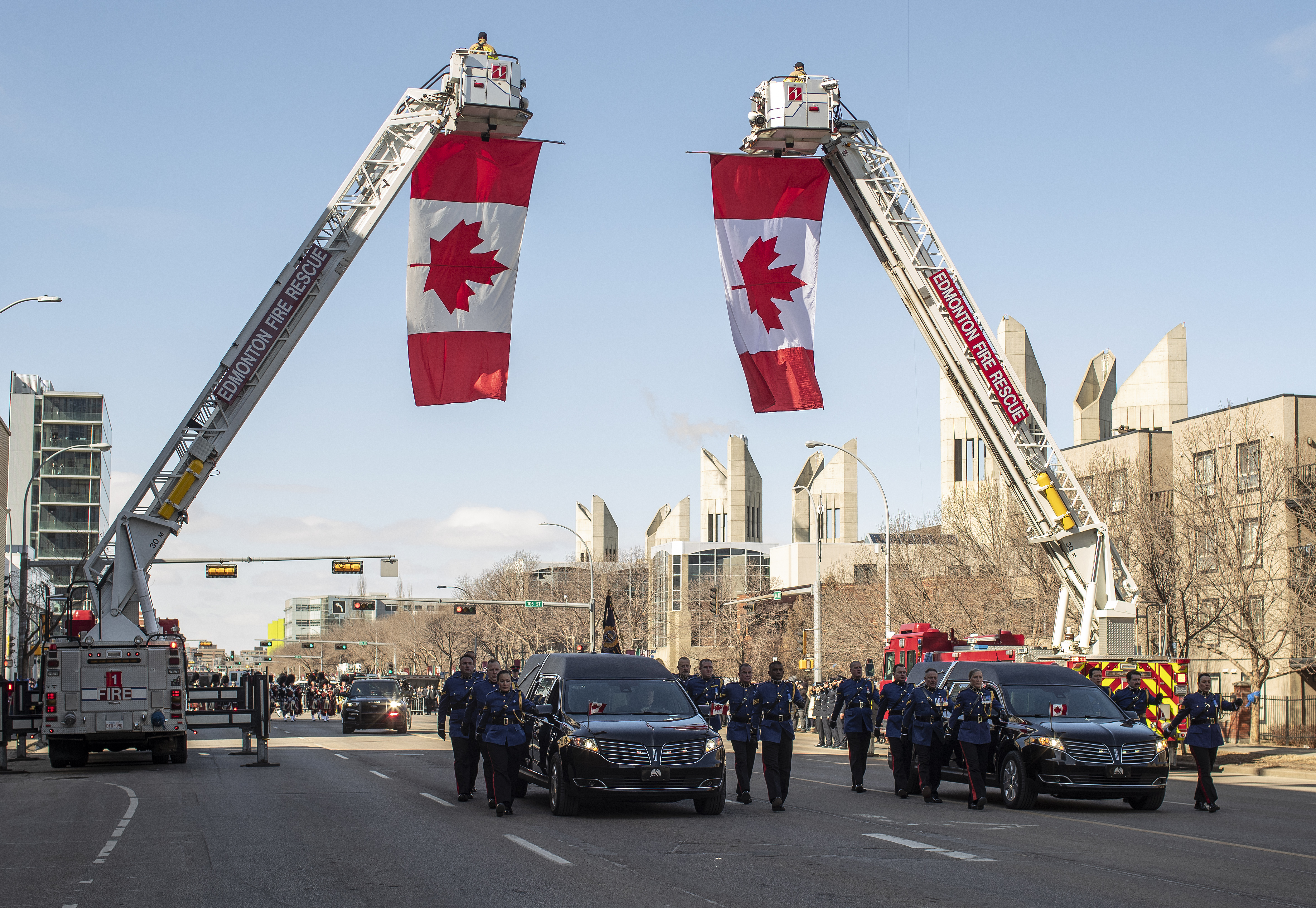 As Jordan and Ryan’s bodies were being transported from the Alberta legislature to Rogers Place, where the funeral is being held, Edmontonians lined the procession route to pay their respects and say their goodbyes.