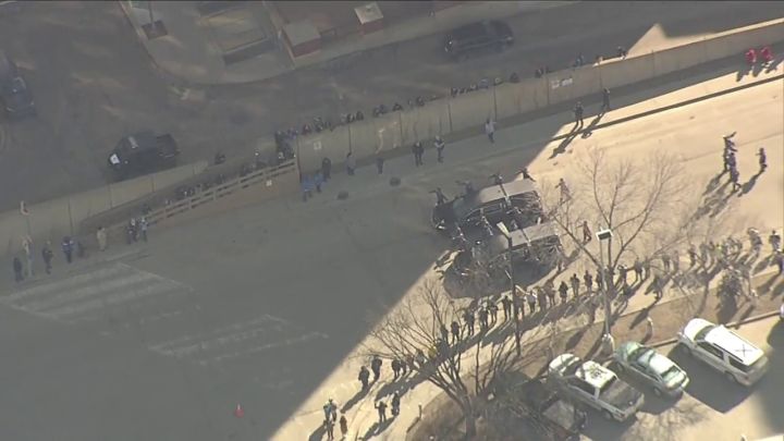 Uniformed officers marched alongside two hearses carrying Jordan and Ryan’s bodies as drums and bagpipes were played.