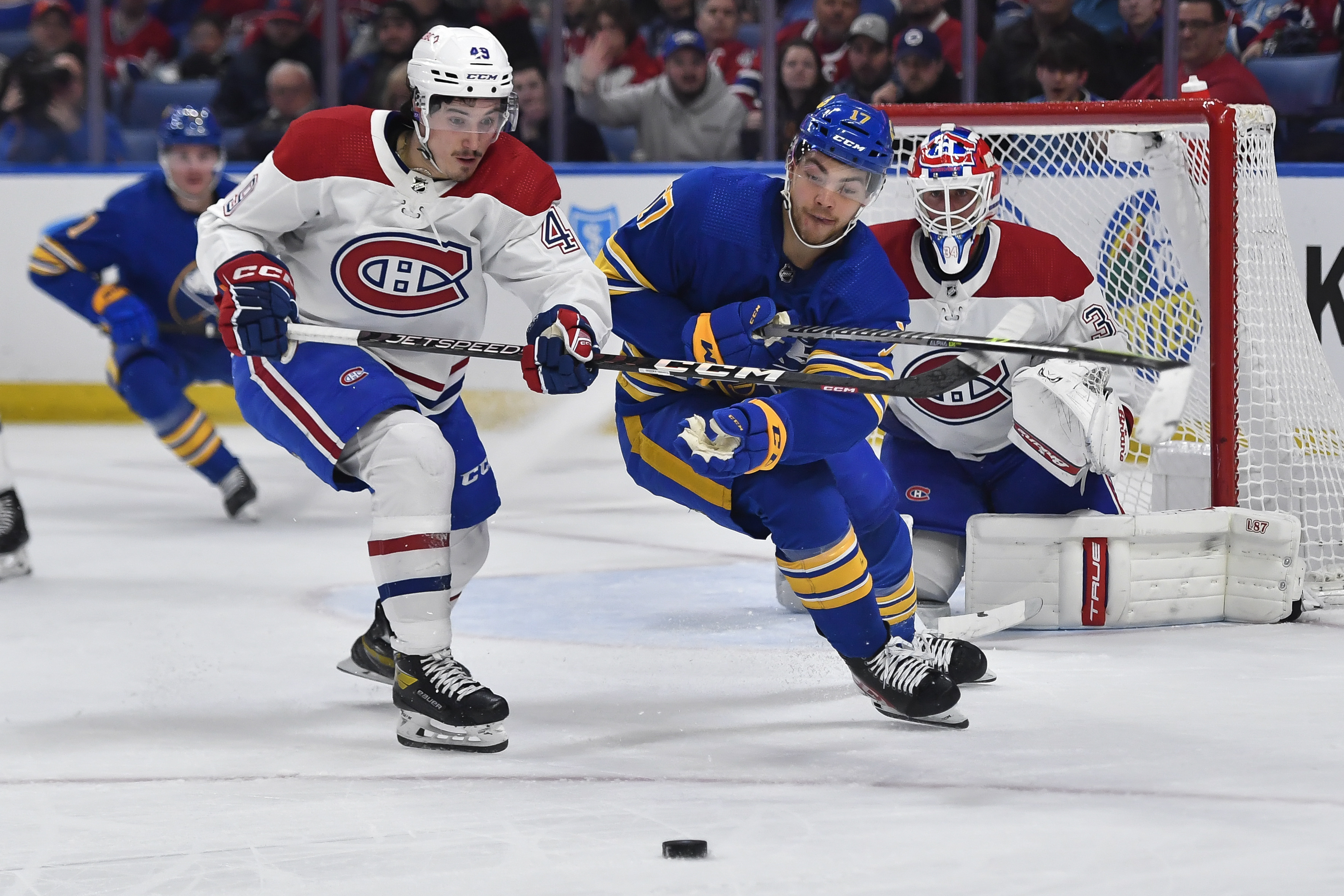 He finds there another defenceman rushing up, and uncovered. The hockey is moving so quickly, it is so difficult to defend. Jordan Harris takes the Drouin pass and scores on his own rebound from two feet out. Harris’ check is a Buffalo winger still at the blue line getting a good view of modern hockey from 40 feet away.