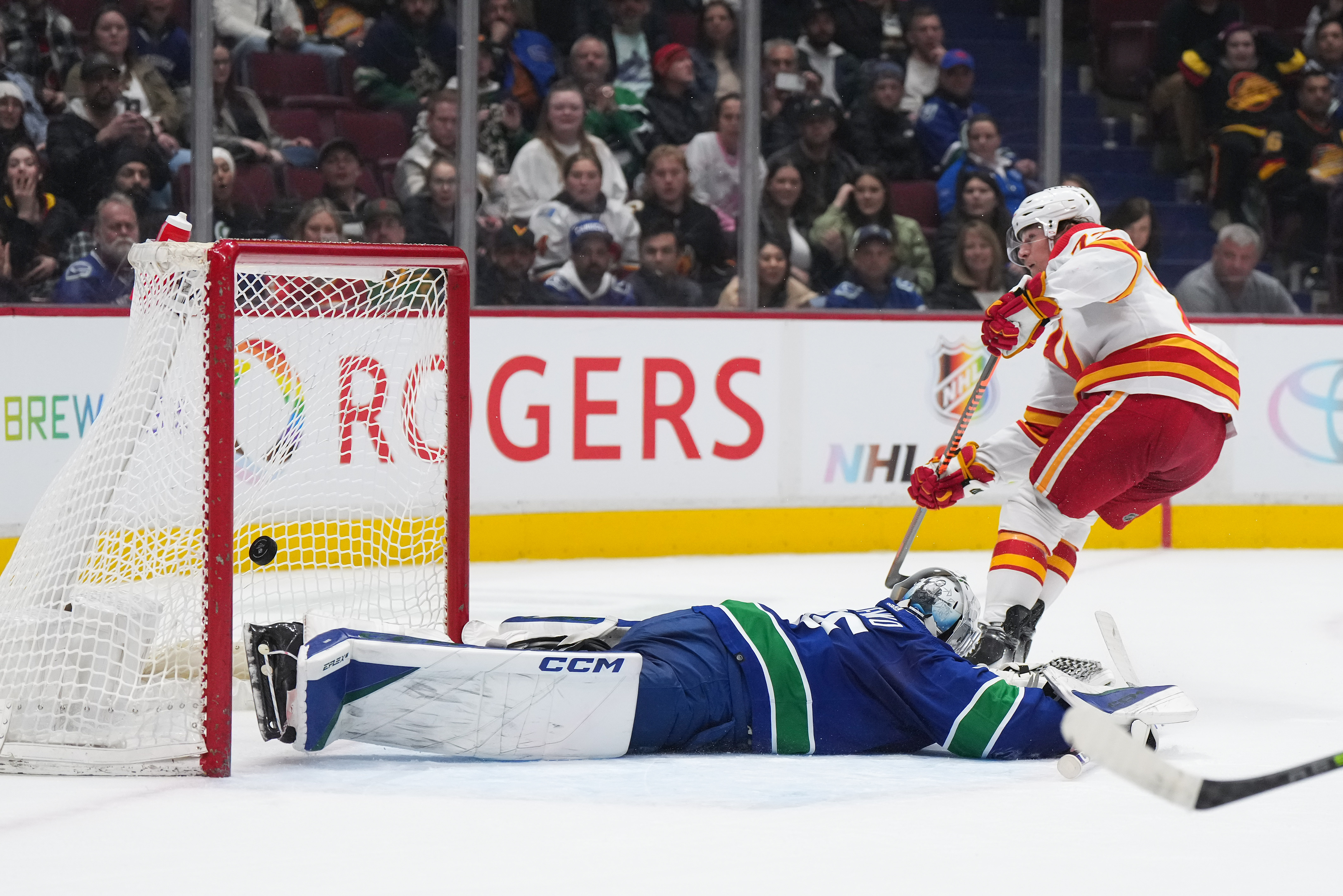 Calgary outshot the home side 15-6 across the second, but Vancouver took a one-goal lead into the locker-room.