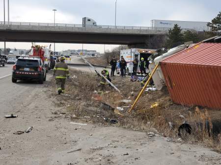 In a tweet at around 10:30 a.m. on Monday, Ontario Provincial Police said the truck rolled over on the Steeles Avenue ramp to southbound Highway 410.
