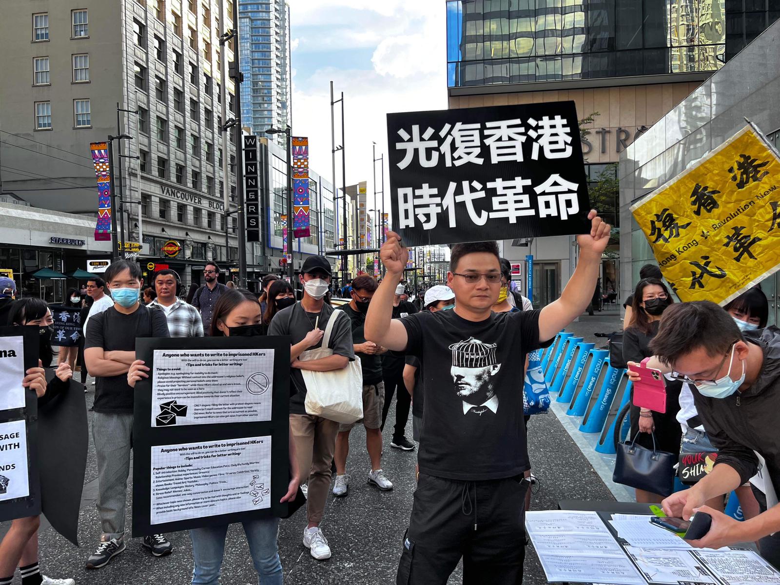 He says unknown members routinely show up to their protests, concealing their faces with masks, to spy on them. He believes people inside the Vancouver consulate report their actions back to China, as “when we organize demonstrations outside the consulate, people inside are using high-definition cameras.”