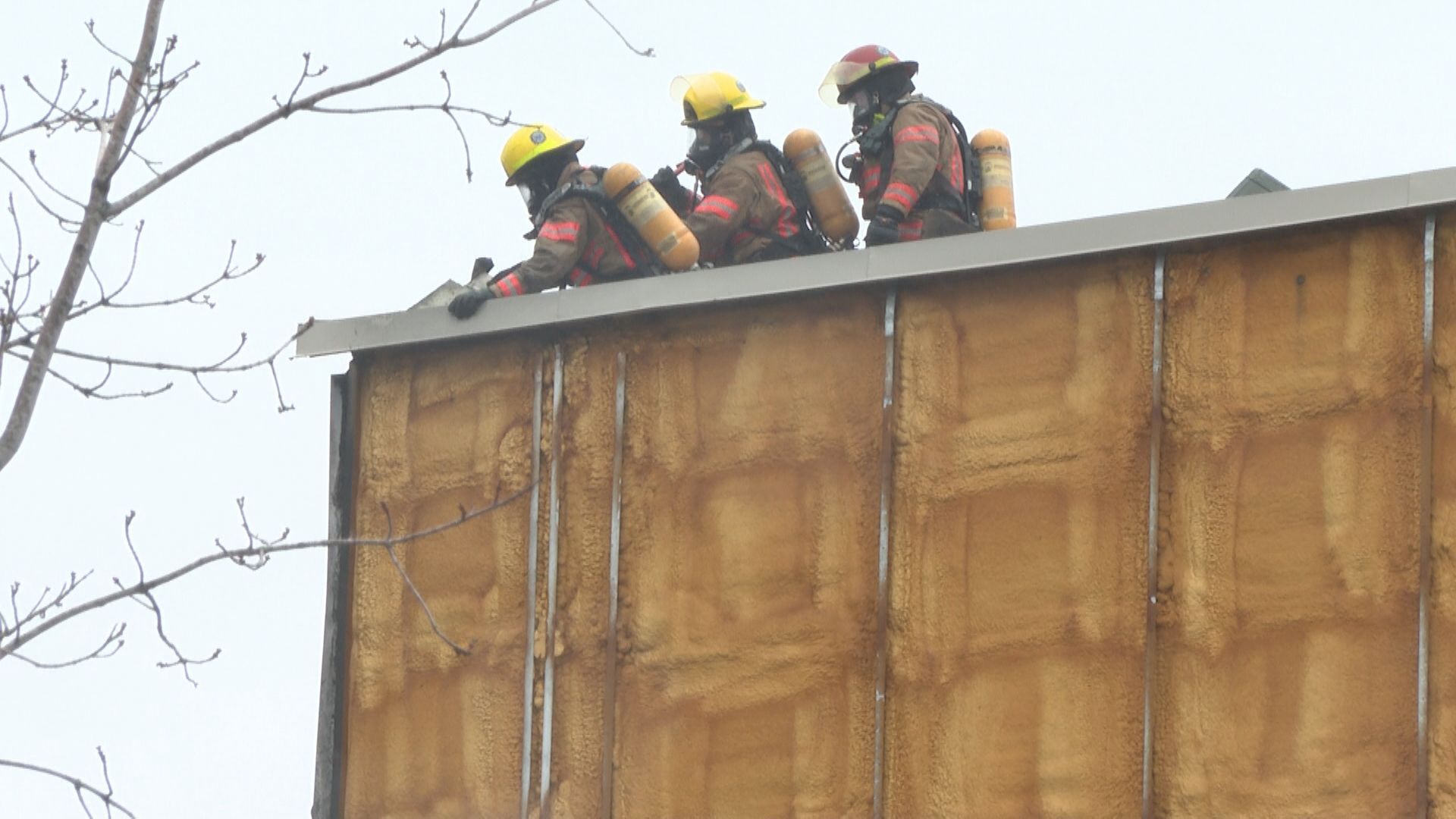 Montreal firefighters extinguished a two-alarm blaze that spread to the rooftop of a building under construction Wednesday morning.