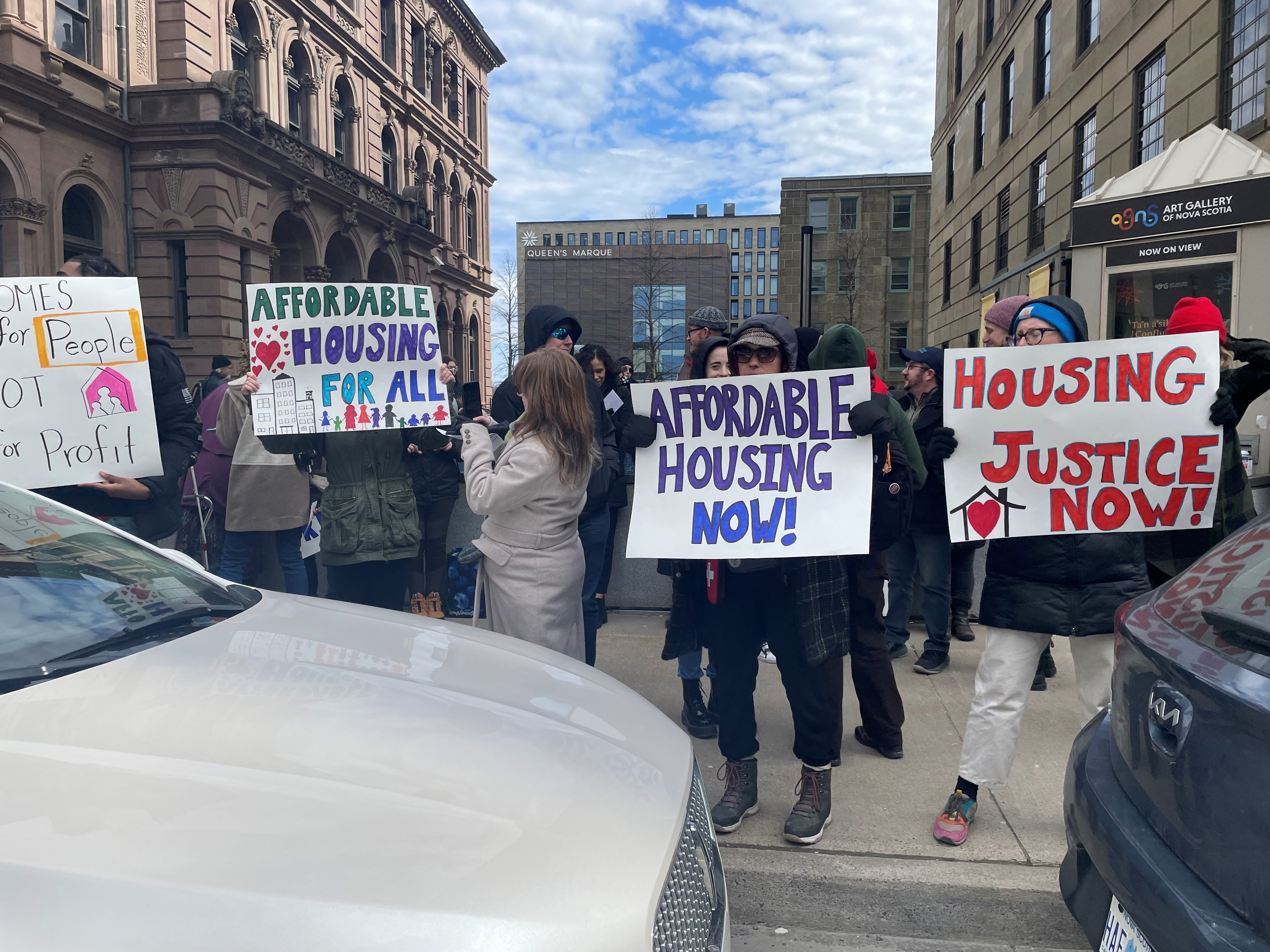 With signs in hand and chants ringing loud, representatives from housing advocacy groups, local tenants and even the Halifax Refugee Clinic were in attendance.