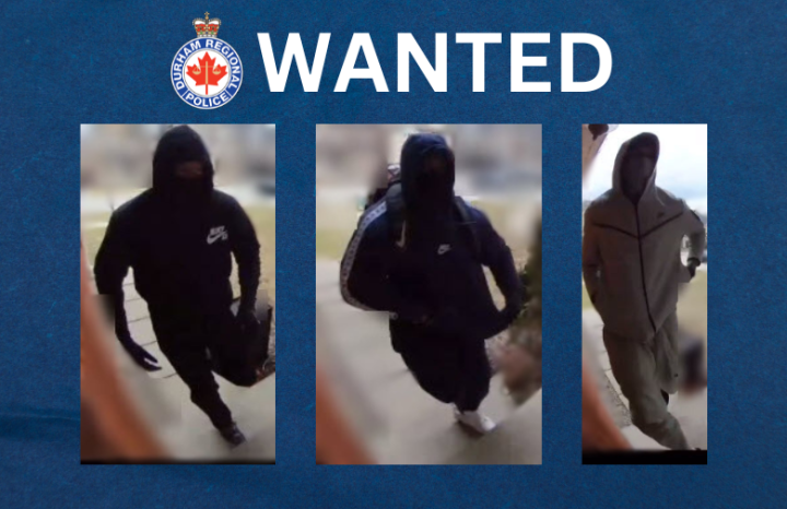 Durham Regional Police said officers were called to an address on Old Harwood Avenue at around 11:50 a.m. on Wednesday after three suspects broke into a home.