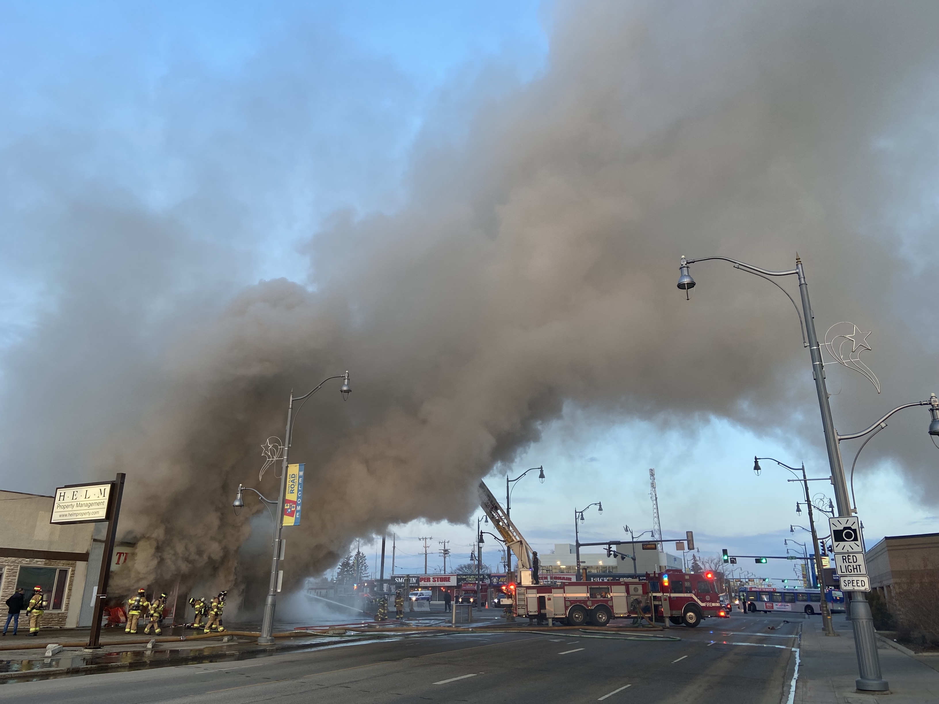Edmonton firefighters battled a massive blaze at a commercial complex at Stony Plain Road and 156 Street on Friday morning.