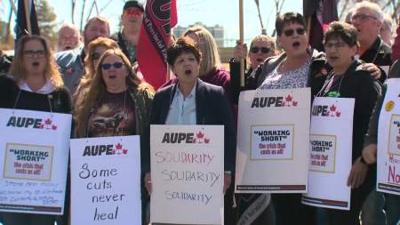 “This government would like us to believe that our health-care system has been fixed and there is no crisis,” AUPE vice-president Sandra Azocar said.