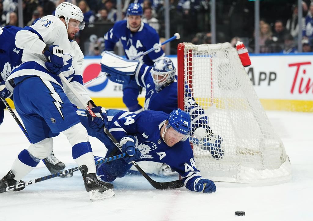 Toronto, which beat Tampa 5-0 in Game 1 in the same building last spring, started to push back, but the visitors went up three with just 2.6 seconds remaining in the period on a power play when a Kucherov one-timer beat Samsonov.